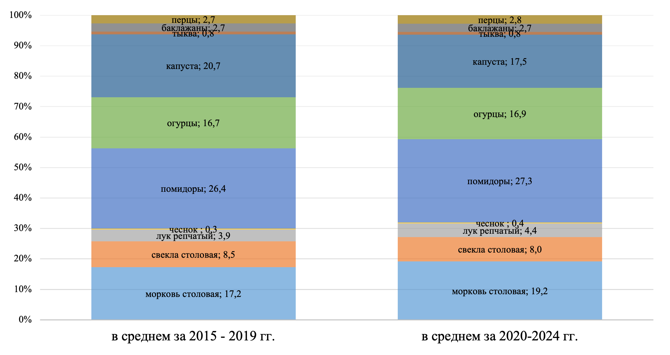 Table 3. Structure of gross harvest of greenhouse and open-field vegetables, %
